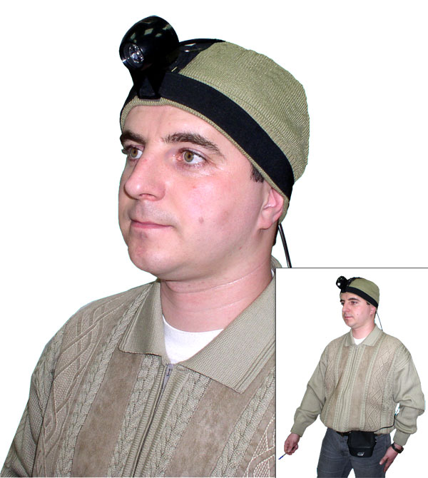 Аккумулятор кислотно-гелевый 12 В 1,3 А/ч. Светодиодная лампа, максимальная освещенность 1500 люкс. Время непрерывной работы 12-16 ч. Дальность луча 30 м. Крепление на головном ремешке.