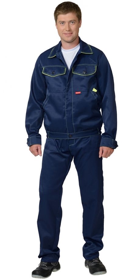 Костюм СИРИУС-БОСТОН : куртка, п/комб. синий с вас. и чер. отд. (узб.Саржа)