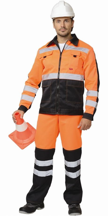 Костюм МАГИСТРАЛЬ-ЛЮКС: куртка, брюки оранжевый с чёрным и СОП