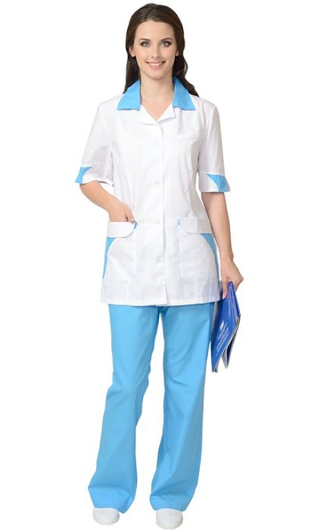Костюм СИРИУС-СТЕФАНИ женский: куртка, брюки, колпак белый с голубым