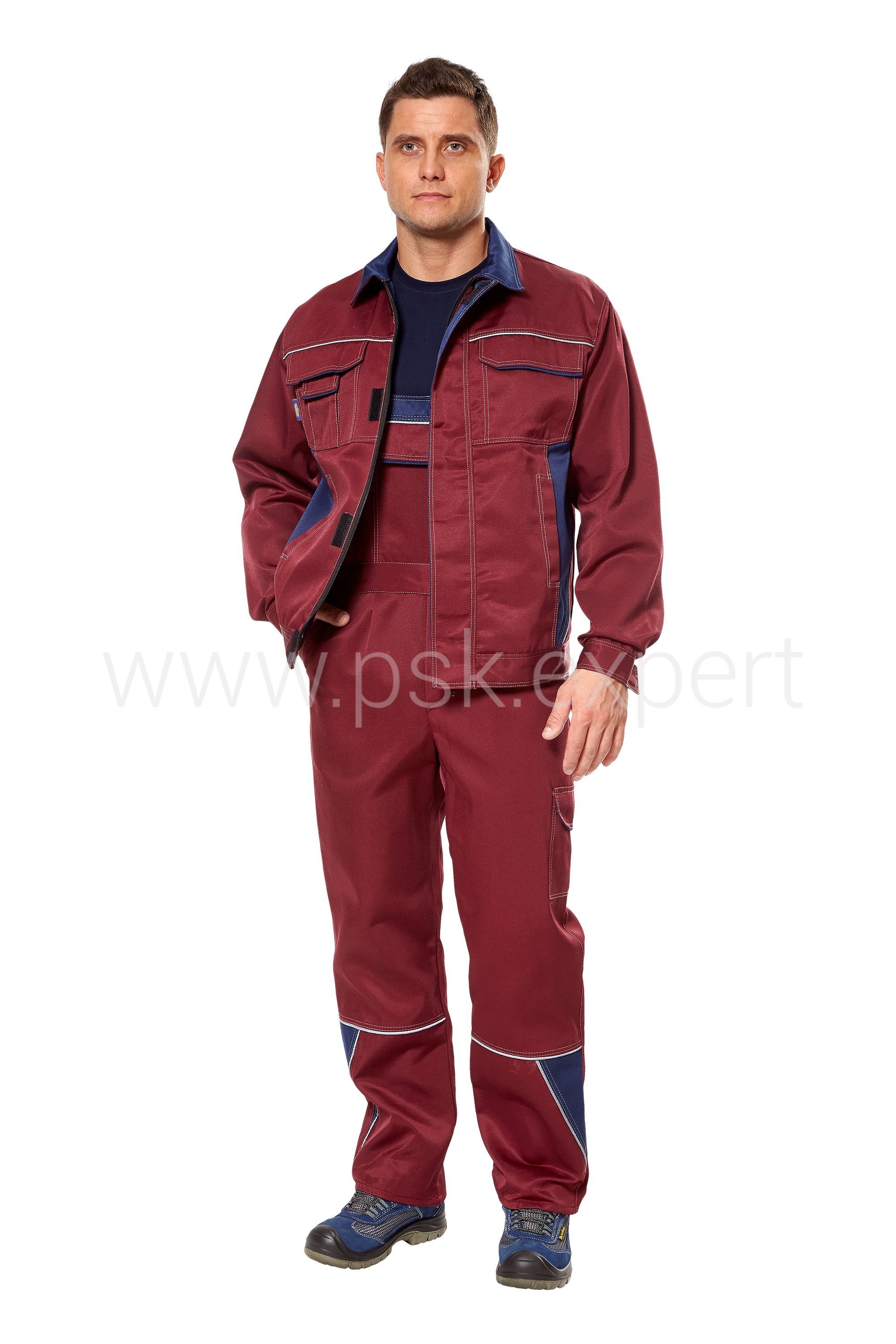 Полукомбинезон на бретелях с эластичной тесьмой, пристегивающимися на фастексы. Боковая застежка на пуговицы, гульфик в среднем шве на молнии. Большой нагрудный карман с клапаном. Дополнительный накладной карман с клапаном на боковой поверхности брюк, сзади накладной прямой карман и специальный карман с петлей-держателем для инструментов. Отделочные элементы со светоотражающим кантом в верхней части грудки и нижней части брюк.