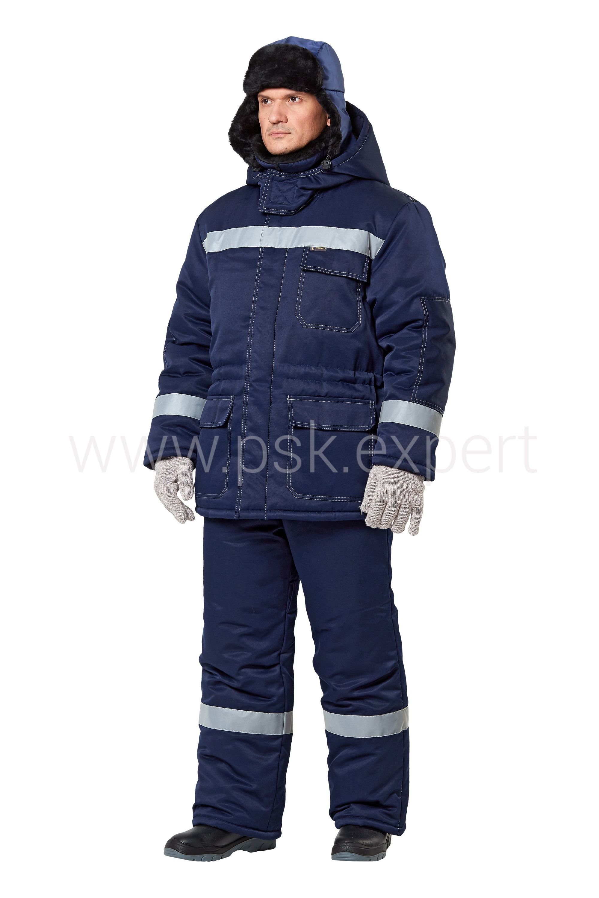 Костюм мужской Инженер (Термофайбер) зимний т-синий с черным (Амулет)