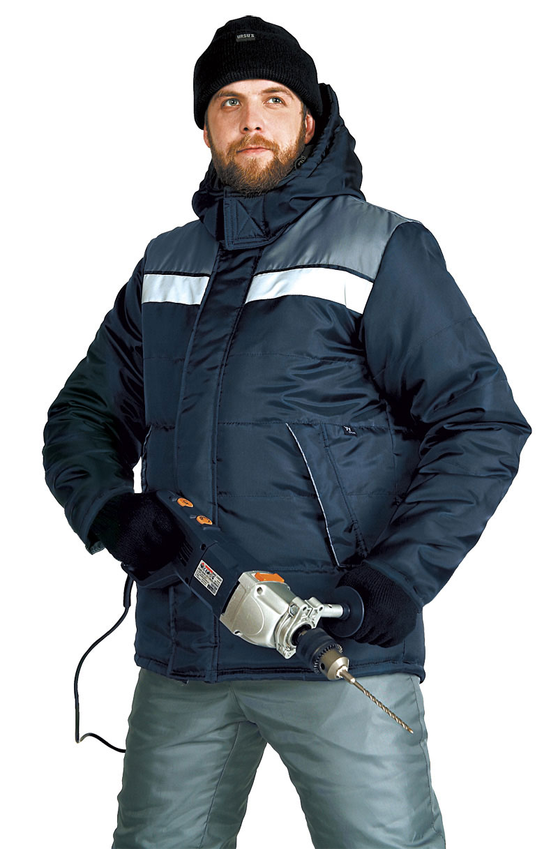 Куртка мужская Урал зимняя с мех. воротником т-синяя с оранжевым