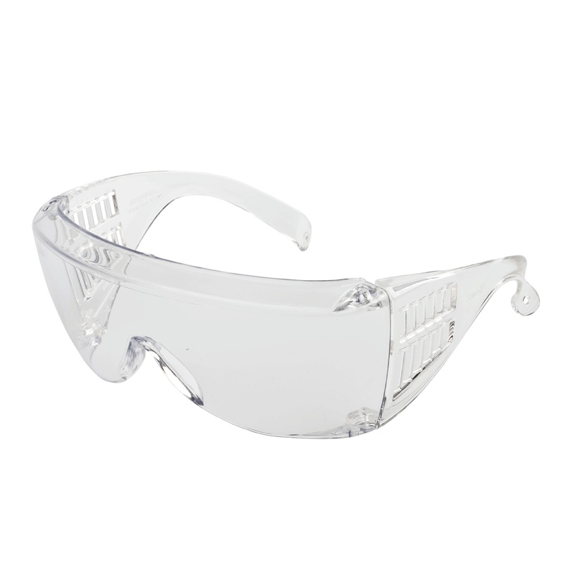 Очки с увеличенным панорамным обзором для защиты от высокоскоростных летящих частиц (45 м/с) с низким уровнем кинетической энергии и УФ-излучения. Имеют увеличенную боковую и верхнюю защиту. Очки выполнены из ударопрочного поликарбоната (без металлических деталей) с ярко выраженной боковой защитой и вентиляционными прорезями. Прозрачная линза имеет антизапотевающее покрытие и покрытие против царапин. Конструкция данной модели очков позволят использовать их совместно с корригирующими очками соответствующего размера.