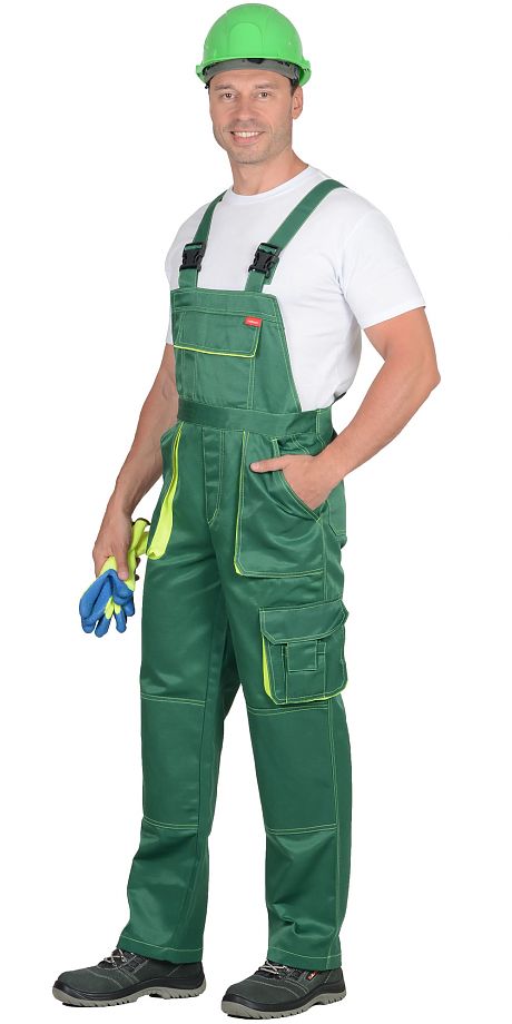 Костюм мужской Дока летний, с полукомбинезоном т-зеленый с лимонным
