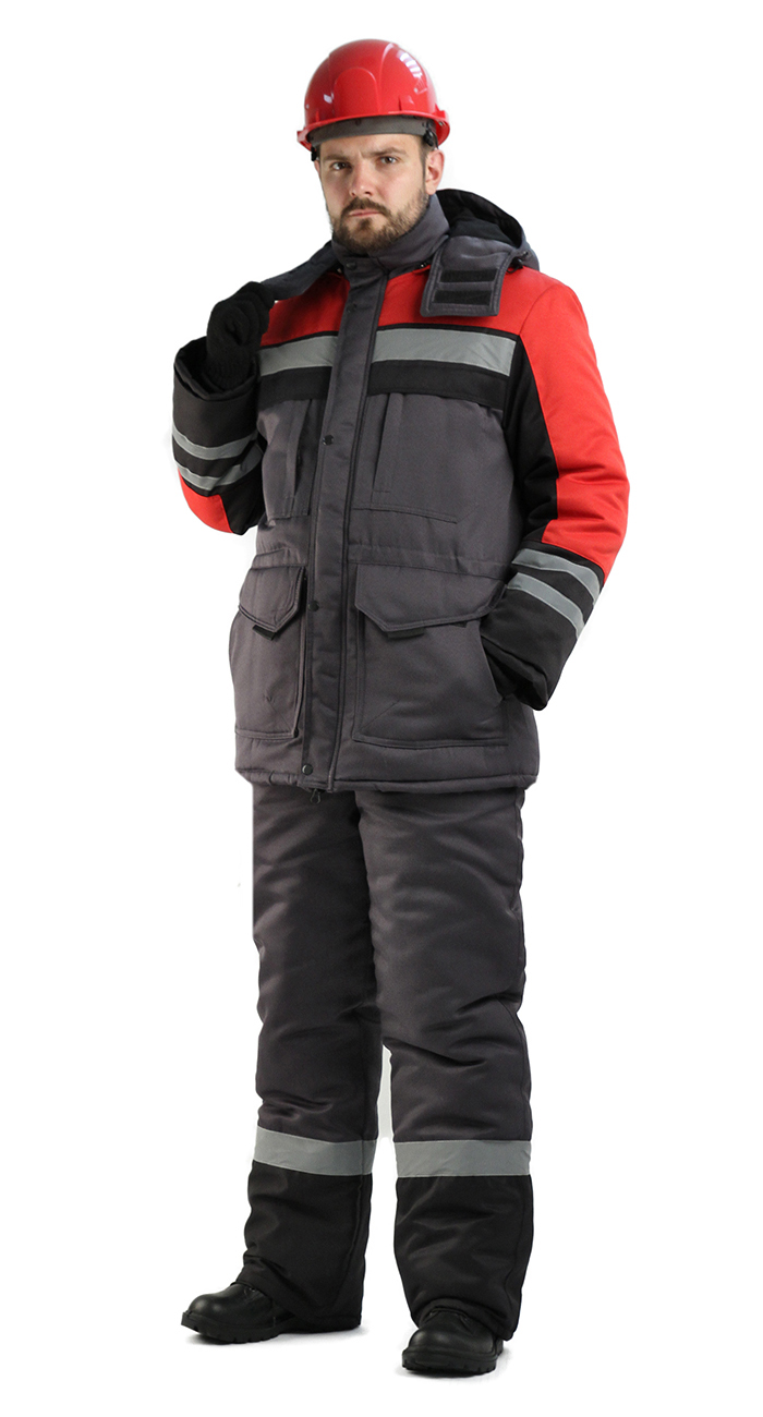 Костюм мужской Зимник зимний т.серый с красным и черным