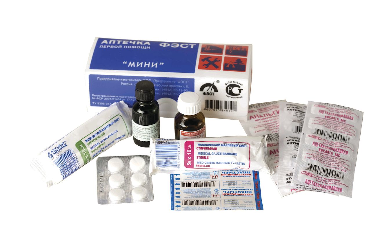 | 3 | Бинт стерильный 5 м х 10 cм | 1 шт. | |