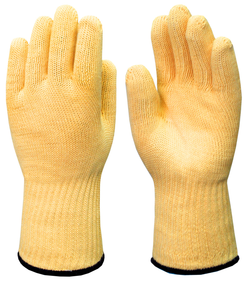 - Верхний слой выполнен из волокна Kevlar® с плотностью вязки 7 петель на дюйм, что обеспечивает защиту от контактного тепла до 350 °С. Материал не поддерживает горение и не плавится.