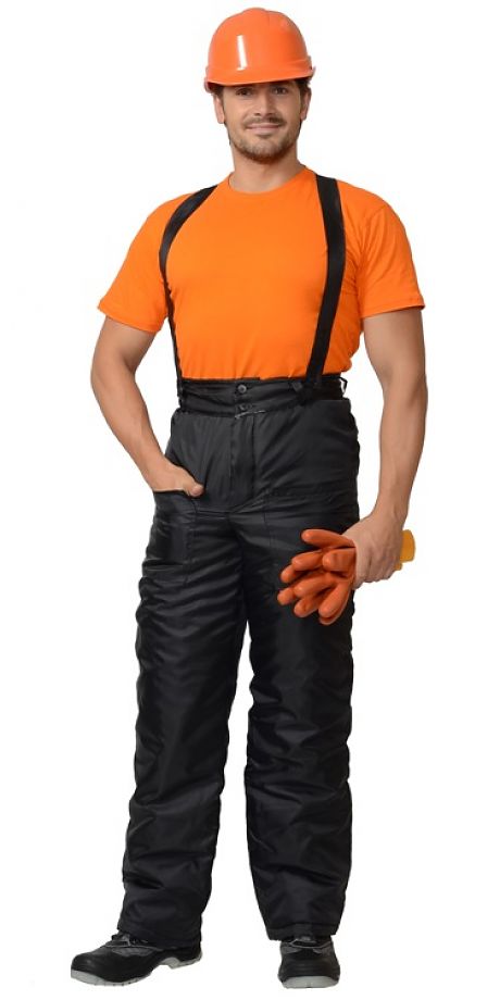 БРЮКИ с бретелями, регулируемыми при помощи эластичной тесьмы и пуговиц, высоким простеганным поясом со шлевками, застежкой пояса и гульфика на пуговицы, ветрозащитным клапаном гульфика, двумя накладными карманами.