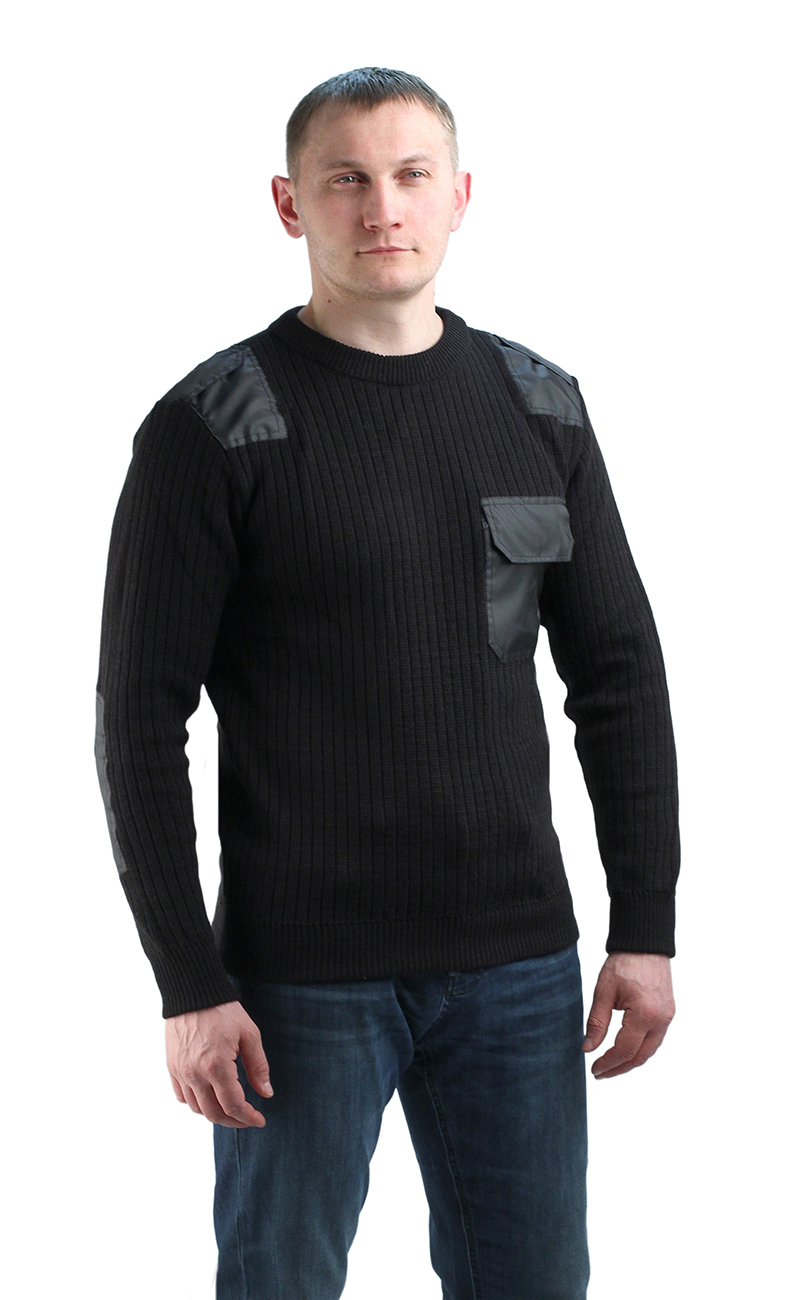 Джемпер-свитер с усилительными накладками в области плеч и локтей, а так же накладной карман и погоны из водоотталкивающей ткани.