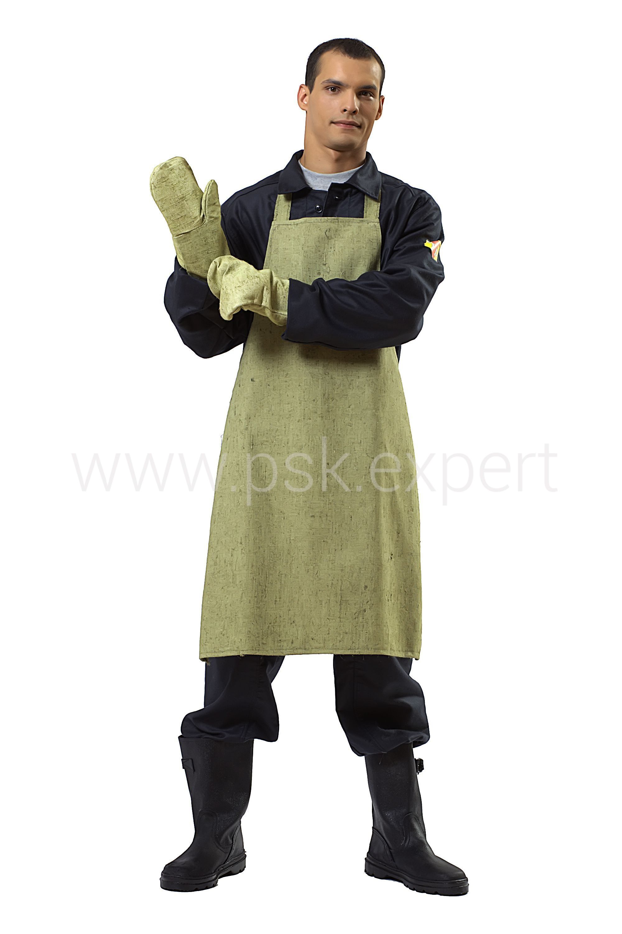 Фартук с цельнокроеной грудкой и замкнутой шейной бретелью предназначен для защиты от пыли, брызг и грязи.