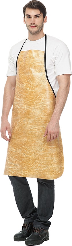 Фартук с цельнокроеным нагрудником, с замкнутой шейной бретелью. К верхним боковым углам притачана тесьма для завязывания.