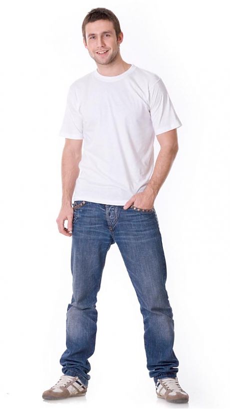 Трикотажное полотно: 100% х/б, пл. 160 г/кв.м. Футболка с короткими рукавами, с круглой горловиной. Р-ры: с 88-92 (М) по 120-124 (XXXL). ГОСТ 20462-87.