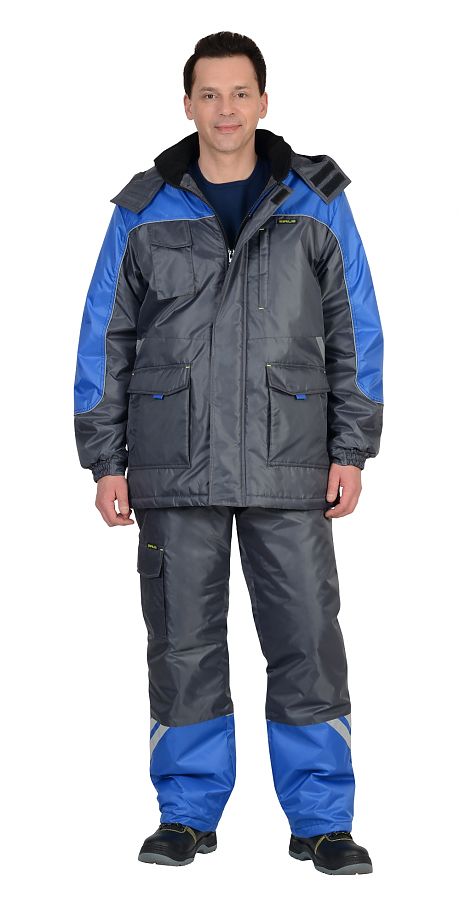 Костюм СИРИУС-ФОТОН зимний: куртка дл., брюки тёмно-серый с васильковым и СОП-25 мм.