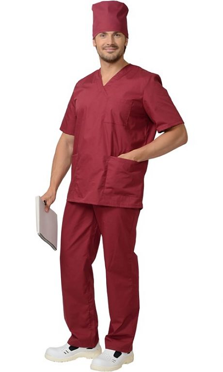 Костюм хирурга универсальный: блуза, брюки бордовый