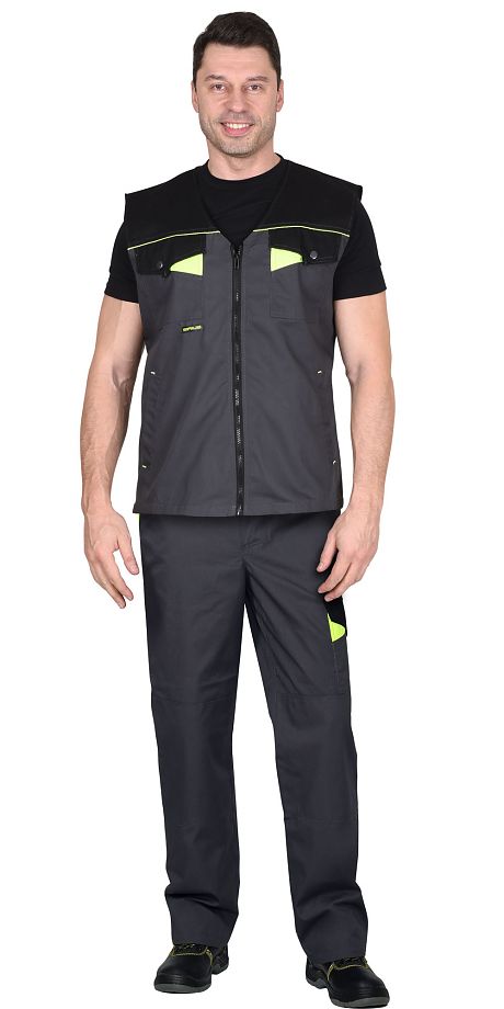 Костюм мужской Профи летний с п/к Т.серый со светло- серым тк. Смесовая