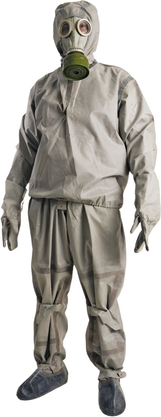 Костюм состоит из куртки с капюшоном, чулок, цельнокроеных брюк с союзками и припаянными бахилами. Комплектуется перчатками КЩС.