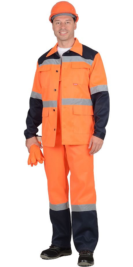 Костюм "МАГИСТРАЛЬ-СПЕЦИАЛИСТ" лет.: куртка длин., п/комб. оранж. с синим и СОП