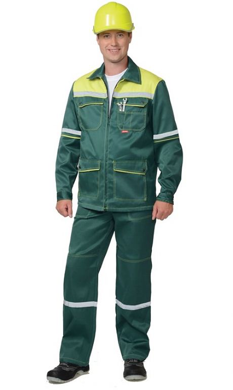 Куртка прямого силуэта, с центральной застежкой на молнию; клапаны карманов и манжеты застегиваются на кнопки. Брюки с гульфиком на молнии и застежкой пояса на кнопку; с наколенниками. СОП-25 мм. ГОСТ 27575-87.