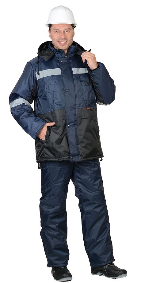 Куртка длинная прямого силуэта; с притачной утепл.нной подкладкой, с центральной заст.жкой на тесьму-«молнию» и ветрозащитным клапаном с 4 кнопками; воротник - «стойка», с планкой скрывающей тесьму-«молнию» для прист.гивания капюшона; притачным утеплителем.Полукомбинезон прямой; с притачной утепл.нной подкладкой, с цельнокроеной грудкой и спинкой; с центральной заст.жкой на тесьму-«молнию» и ветрозащитным клапаном с 3 кнопками;