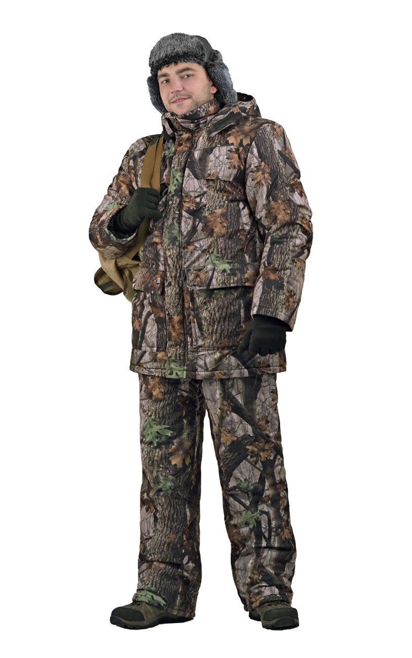 Камуфлированный универсальный костюм для охоты, рыбалки и активного отдыха при низких температурах. Состоит из удлиненной куртки и полукомбинезона.