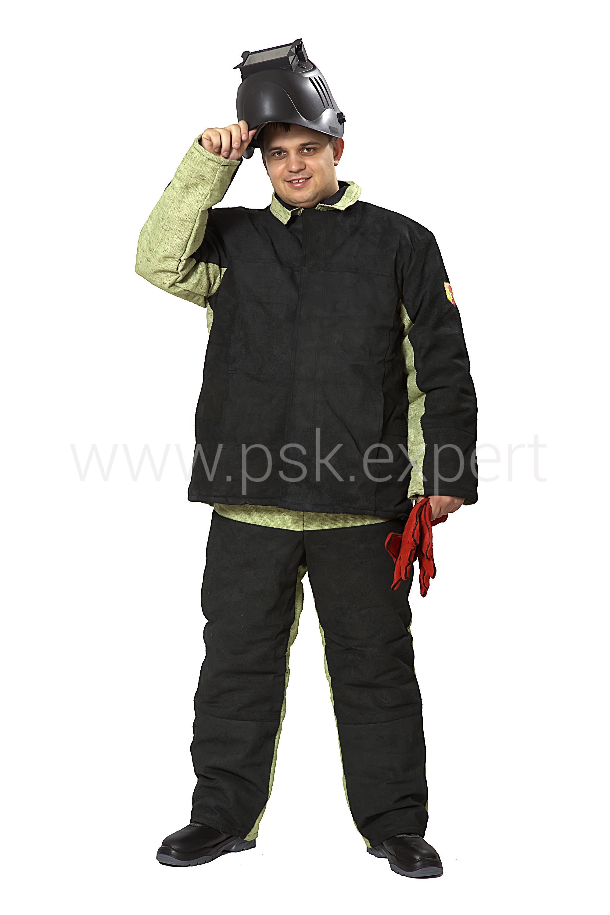 Костюм – куртка и брюки. Куртка с супатной застежкой на пуговицы, с карманами в боковых швах. Вентиляционные отверстия по линии притачивания кокетки спины, под проймами. В костюме используются накладки из спилка КРС общей площадью 230 дм2. Подкладка под спилком - бязь. Брюки свободного прямого покроя, с боковыми застежками.