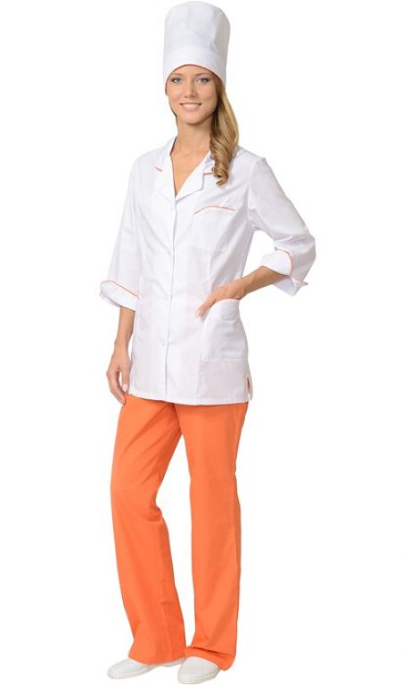 Костюм СИРИУС-ЖАСМИН женский: куртка, брюки, колпак белый с оранжевым