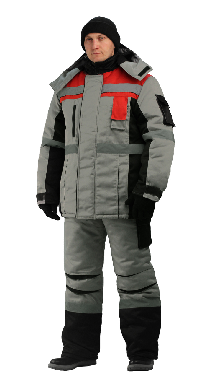 Костюм зимний РЕСПЕКТ куртка + п/к (серый с красно-черным)