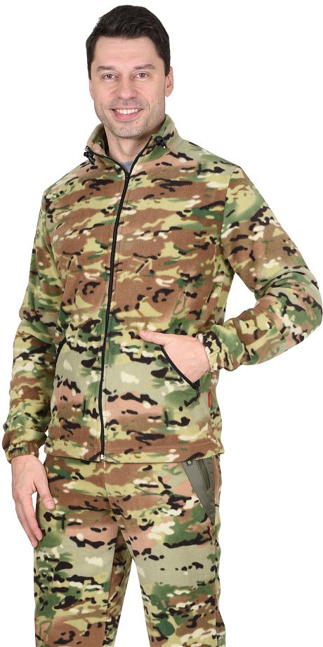 Тк. "Флис", 100% п/э. Шнур по воротнику-"стойке" и низу, застёжка бортов и боковых карманов на "молнию", резинкой по низу рукавов. ТУ 8550-001-81391241-2008.