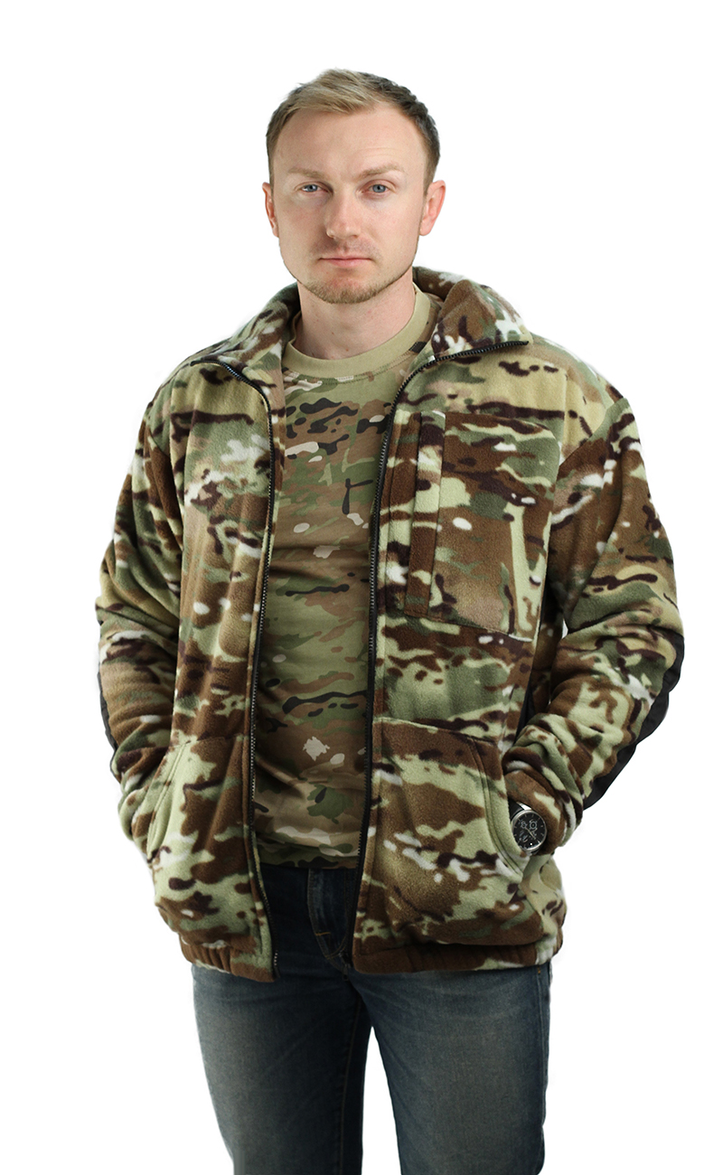 Флисовый костюм "Панда" тёмный хаки с накладками, 350 г/кв.м