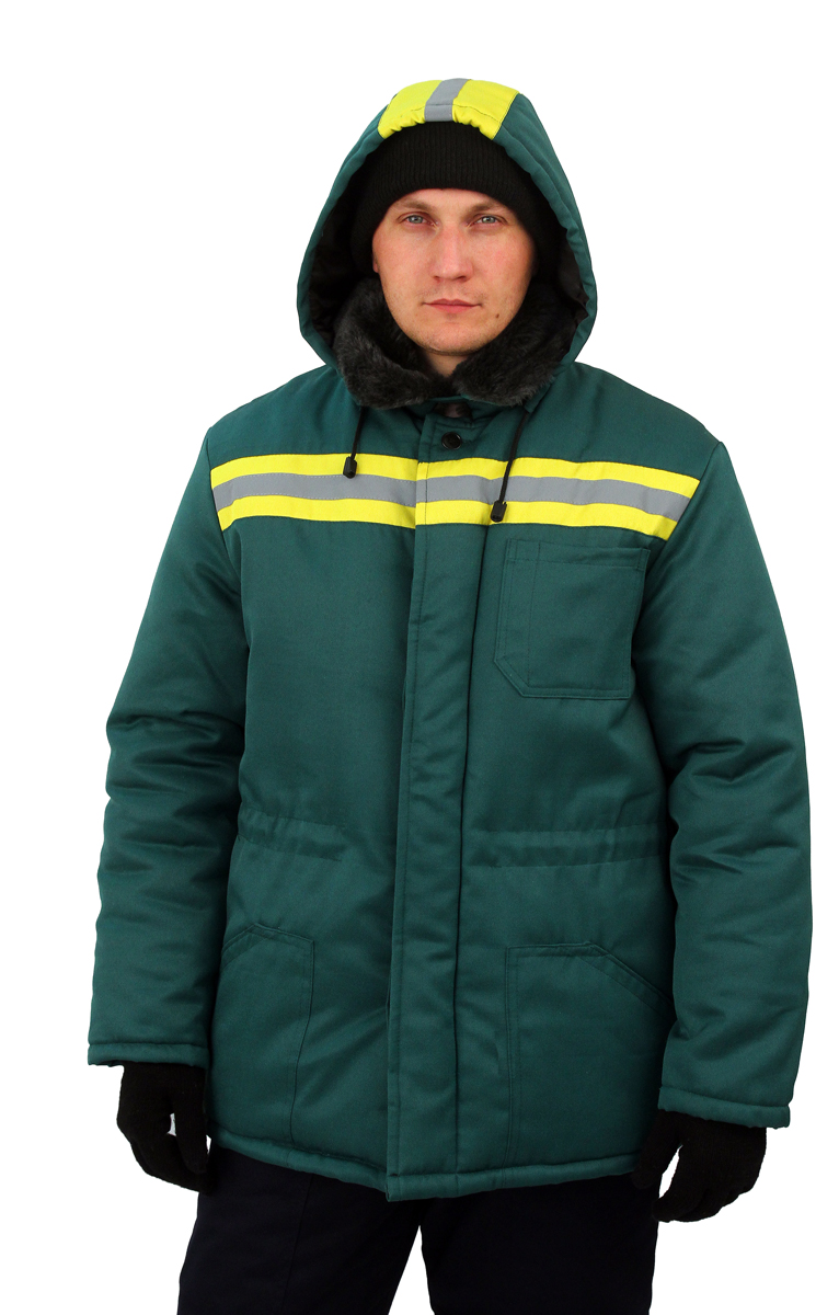 Куртка мужская Урал зимняя с мех. воротником т-зелёная с желтым