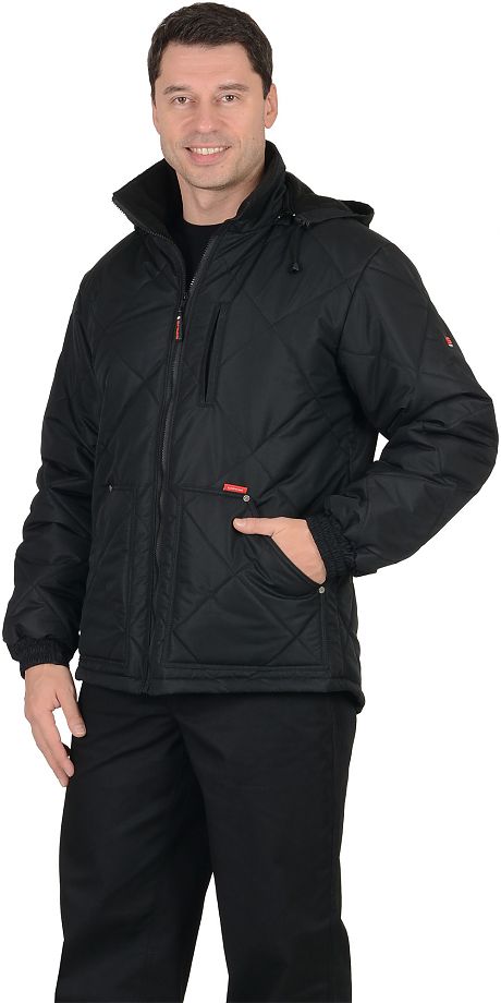 Куртка СИРИУС-ПРАГА-Люкс мужская, с капюшоном, черный
