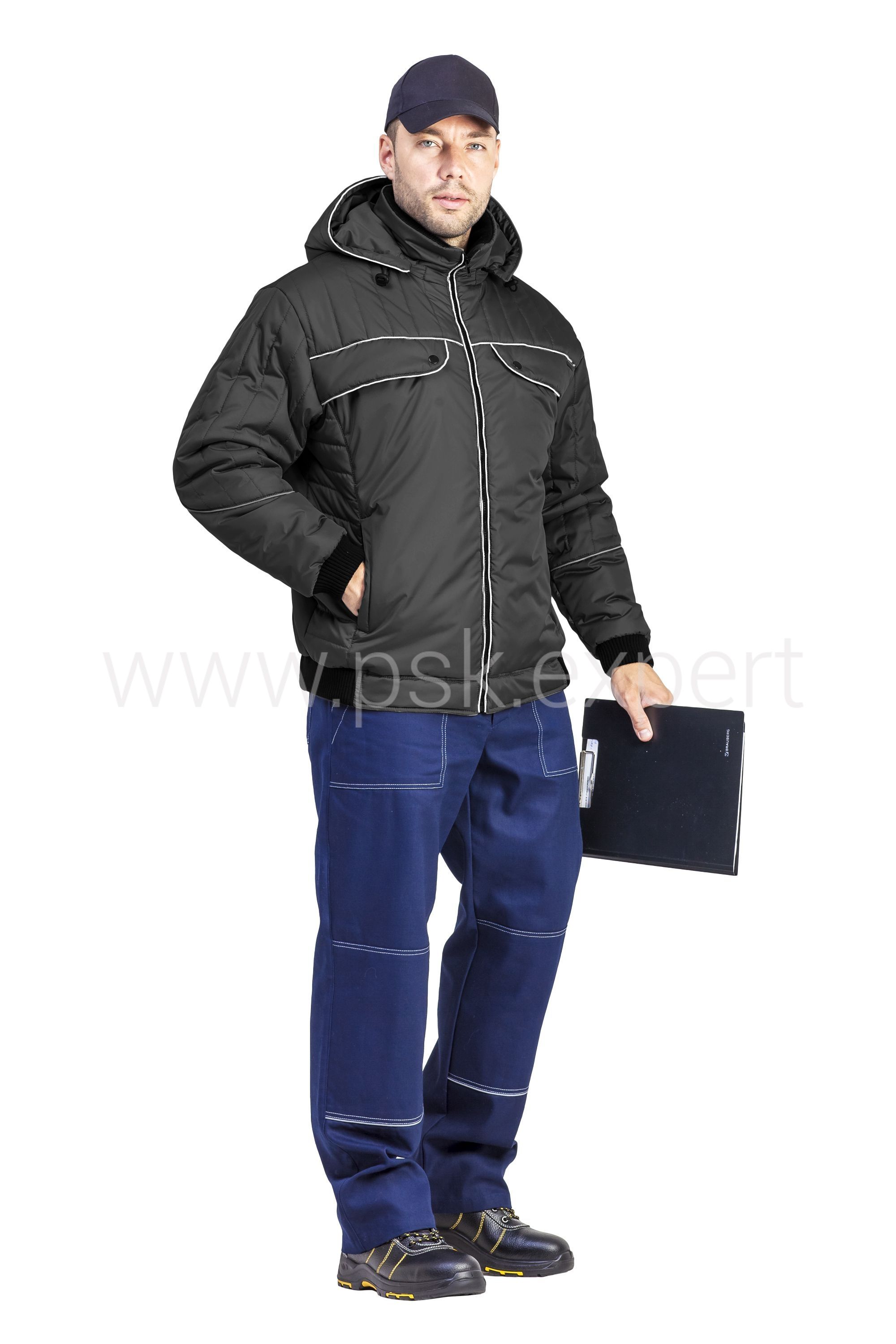Куртка СИРИУС-ПРАГА-Люкс мужская, с капюшоном, черный