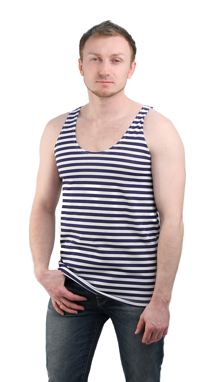 Майка-тельняшка летняя с темно-синими полосками, выполненная в соответствии с ГОСТом 20462-87