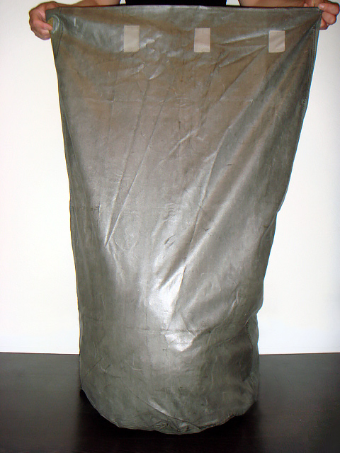 Габаритные размеры в развернутом положении:Выполнен из прорезиненной ткани Т-15 или УНКЛ-3. Мешок снабжен петлями для завязывания горловины. Днище – петлей для транспортировки заполненного мешка к пункту обеззараживания.