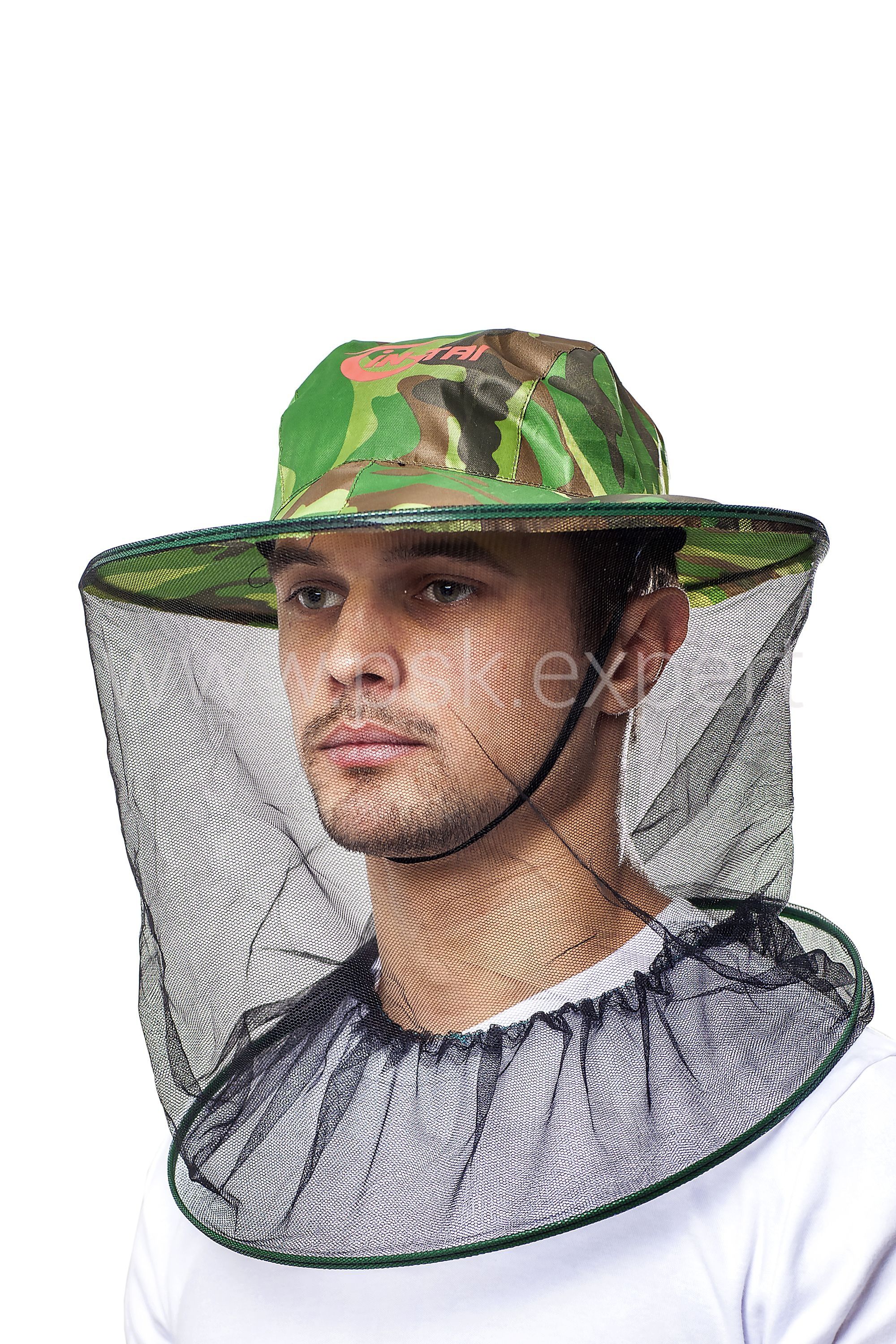 Накомарник-панама с противомоскитной сеткой. Для дополнительной защиты - утяжка по низу сетки. Благодаря дополнительному каркасу сетка не касается лица.