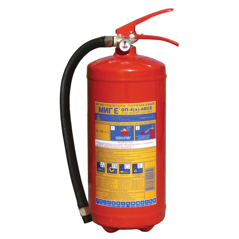 Наиболее оптимальными в этом случае и если речь не идет о точном электронном оборудовании или, например музейных экспонатах, являются порошковые огнетушители. Один из таких огнетушителей Огнетушитель ОП-4.