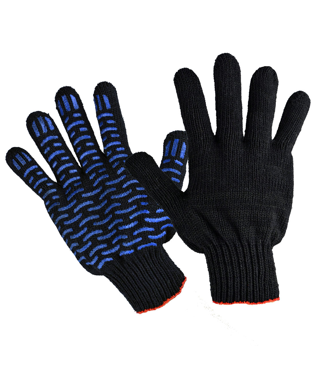 Перчатки х/б Люкс ПВХ-Волна черные 7,5кл (200 пар в уп.)