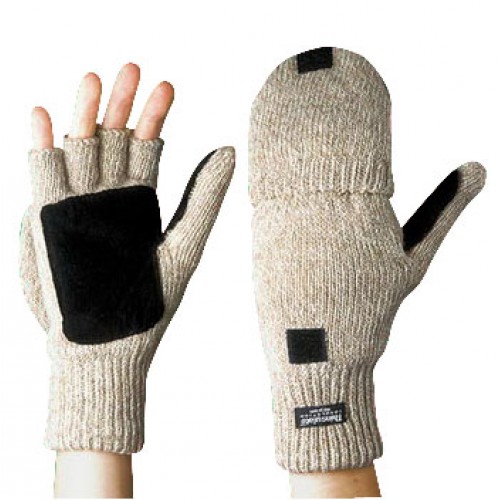 Усилены спилковыми накладками. Откидывающийся клапан быстро превращает варежки в беспалые перчатки.