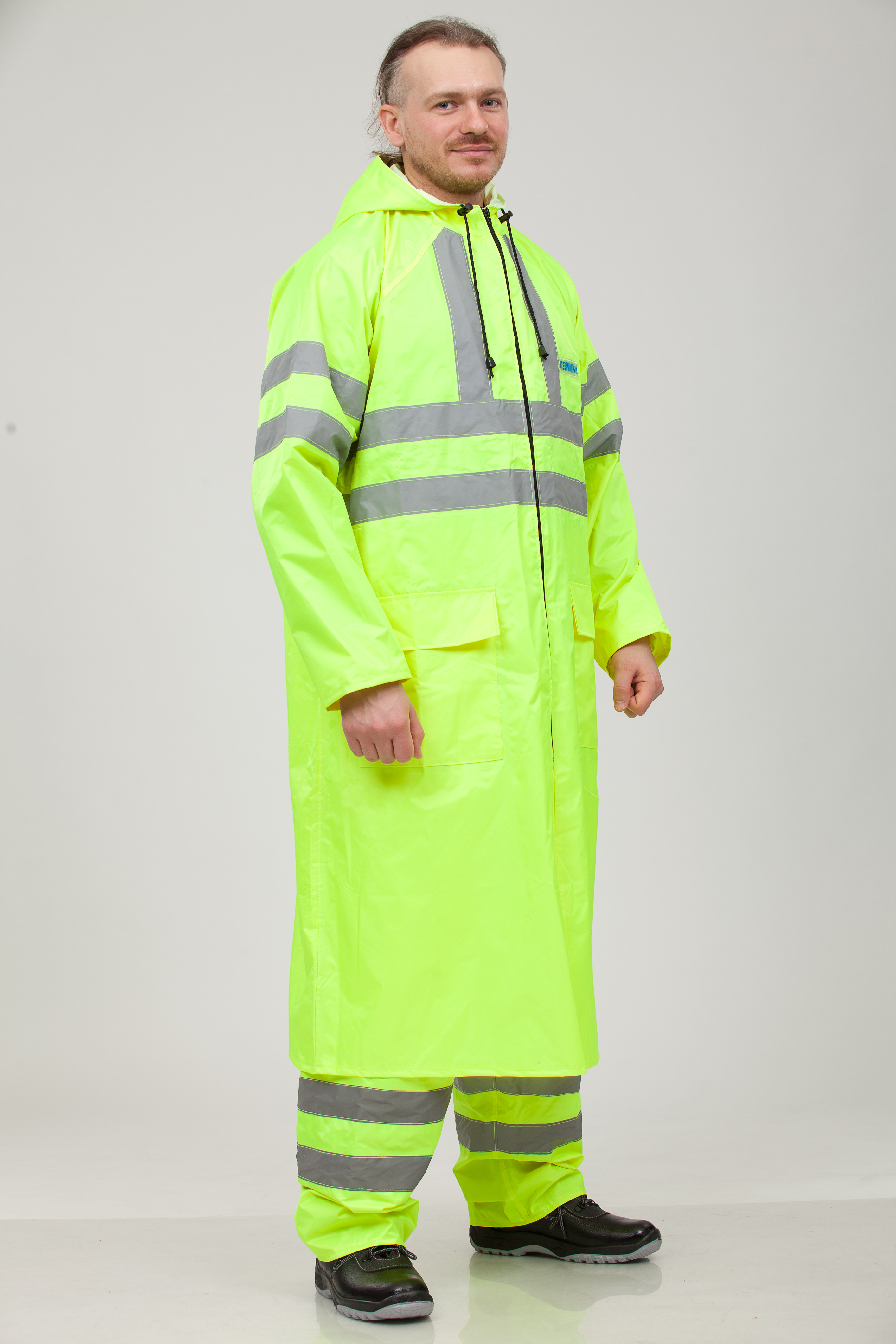 Плащ имеет удобную конструкцию: застежку на молнию, клапан против ветра, капюшоном и два кармана с клапанами.