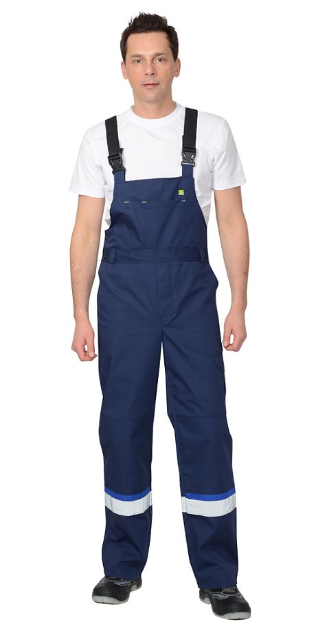 Полукомбинезон с застёжкой гульфика и застёжкой в правом боковом шве на пуговицы, верхним накладным карманом и нижними внутренними боковыми карманами, с наколенниками, с накладным карманом на левом боковом шве с клапаном на липучке, с патой, с двумя задними и карманами для инструментов, по спинке вставлена резинка. ГОСТ 27575-87.