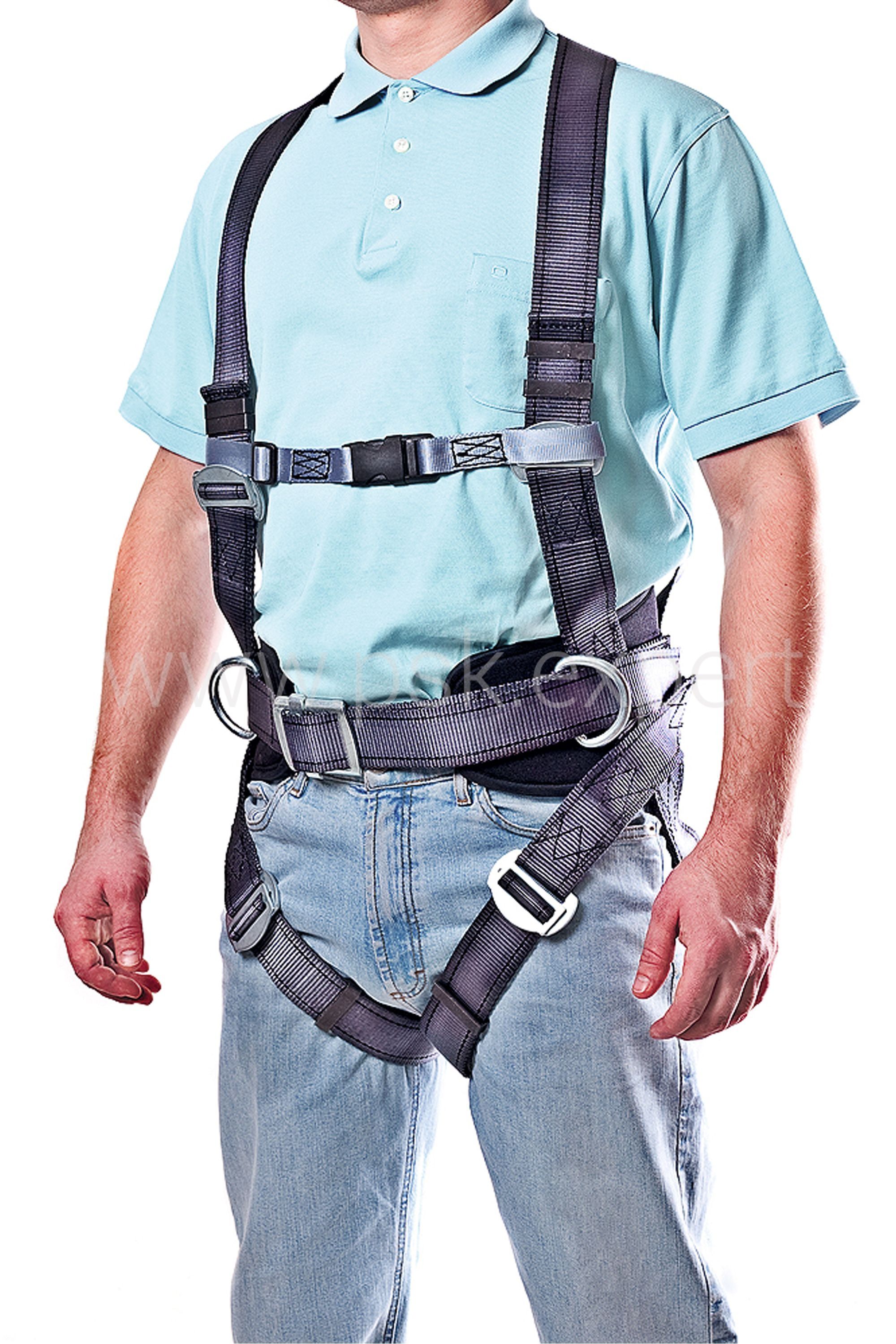 Страховочная привязь с наплечными и набедренными лямками, предназначена для поддержания тела человека при работе, удерживающая его во время и после падения. Высокий прочный кушак. Привязь оснащена тремя D-образными элементами крепления: два по бокам привязи и одно на спине. Регулируемые застёгивающиеся пряжки на наплечных и набедренных лямках. Строп подбирается индивидуально. Регулируемая величина обхвата талии 7401440 мм. Вес удерживающей привязи не более 2 кг Статическая нагрузка не менее 15кН.