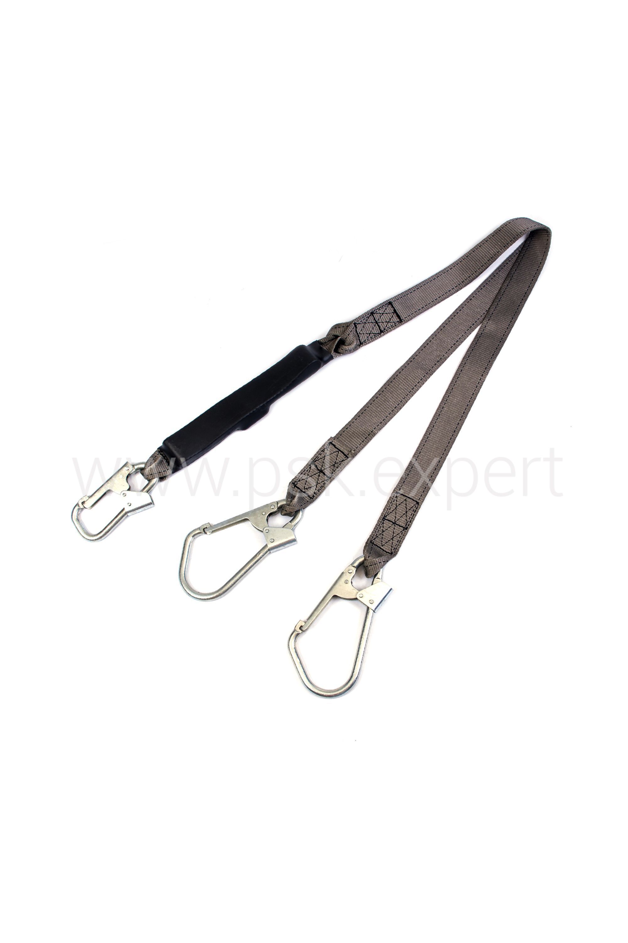 Строп ленточный двухвитевой с амортизатором и тремя карабинами. Используется как средство индивидуальной защиты от падения с высоты. Может применяться как отдельная соединительная деталь или компонент в системе с привязями и с анкерной точкой. Амортизатор позволяет компенсировать травмоопасные динамические нагрузки при падении с высоты. Длина стропа: 1,45 м ± 50 мм. Длина раскрытия амортизатора - 1,5 м Вес стропа не более 1,5 кг.