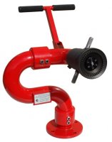 Лафетный ствол имеет рычаг управления и способен вращаться в любом направлении.