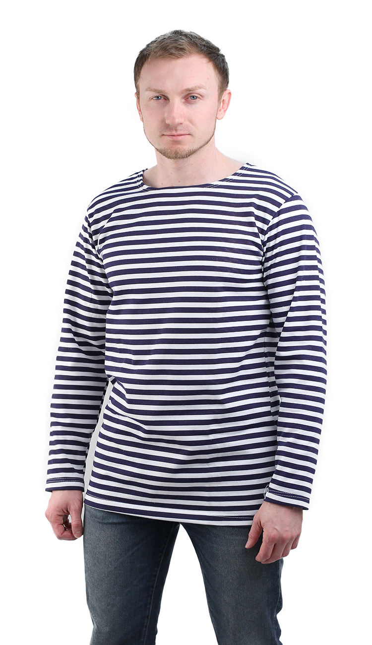 Зимняя тельняшка с начесом-флотская нательная фуфайка с длинными рукавами и темно-синими полосками.