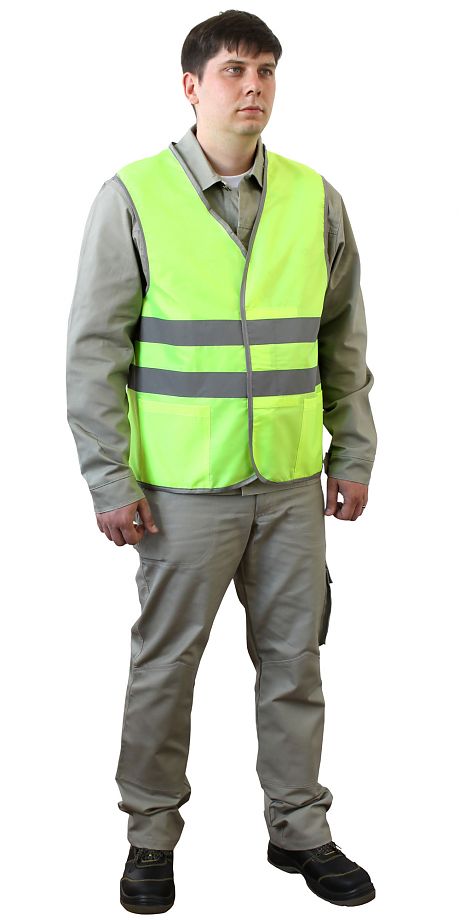 Тк. "Оксфорд", 100 % - п/э. Р-ры: 88-92, 96-100, 104-108, 112-116, 120-124. с центральной застёжкой на "липучку" Края окантованы. 2 ряда СОП 50 мм. ГОСТ 12.4.219-99